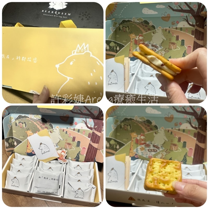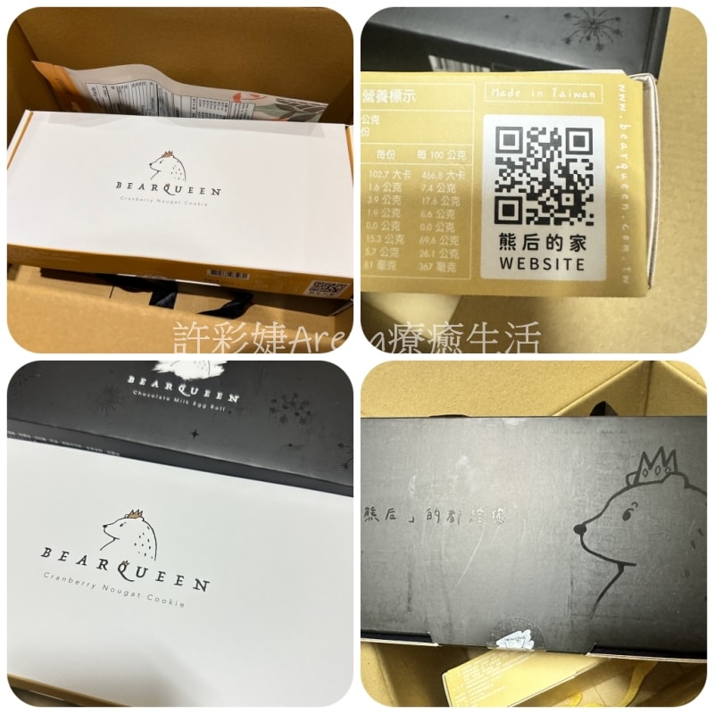 很驚喜收到學員直接網購送的端午節禮盒【熊后 BearQuen】,非常感謝學生很會挑選~寄來超好吃伴手禮牛軋餅,我超愛吃這些小零嘴。外盒是超可愛的熊熊圖案,有黑黃兩色跟夾鏈袋三樣都是不同包裝,原來是在地台灣品牌:熊后 BearQuen,收到三樣超豐盛的,外盒超吸睛之外,我個人滿喜歡這種環保手提袋設計超方便的,可以直接提不用在另外裝袋子很貼心,節日送禮就很適合提了就走,可以拿來送一些觀光的國外朋友也超推薦!!!