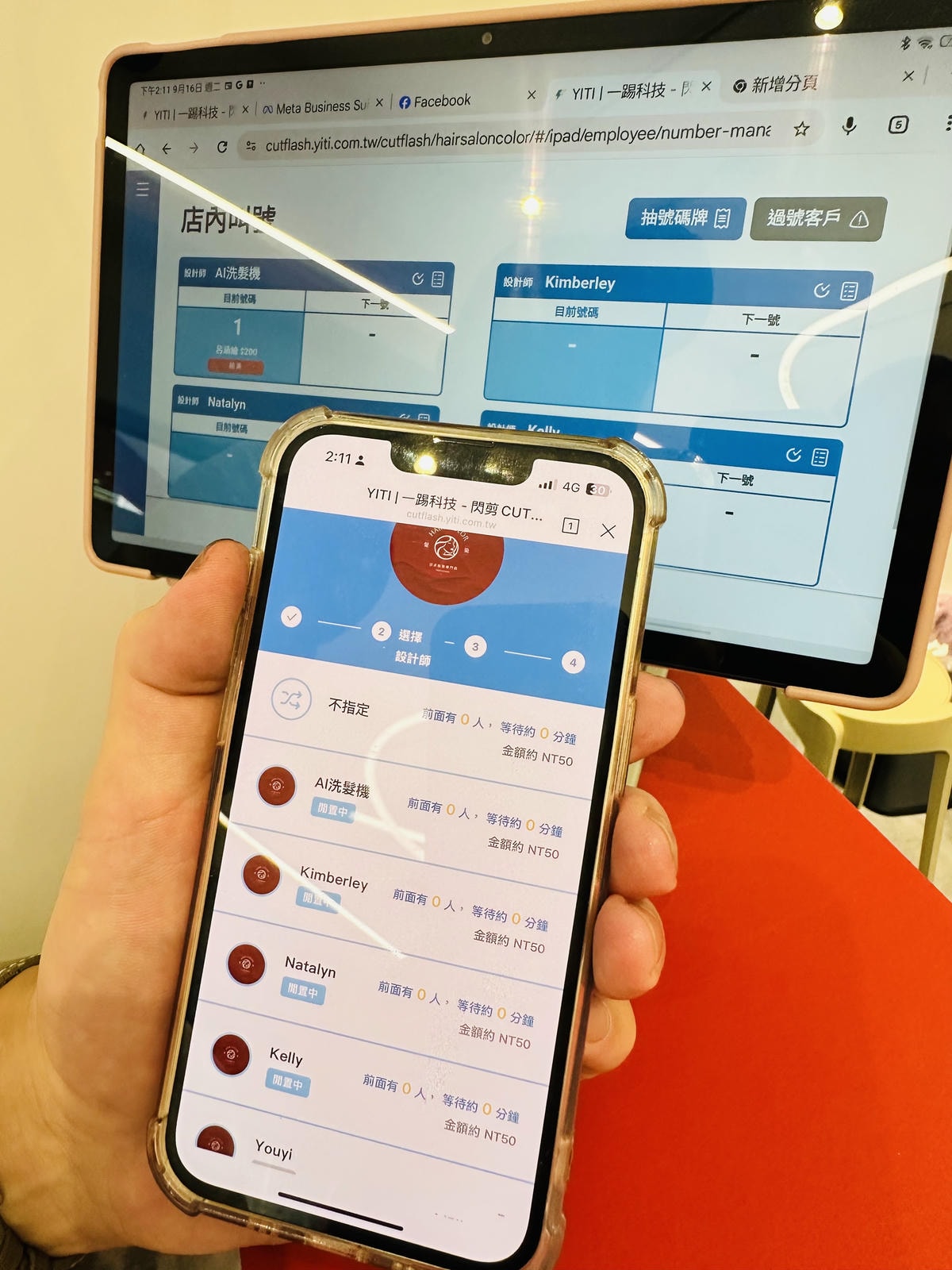 🌟現場平板自助 → 直接排隊、挑設計師,科技感滿滿,效率又快速!
